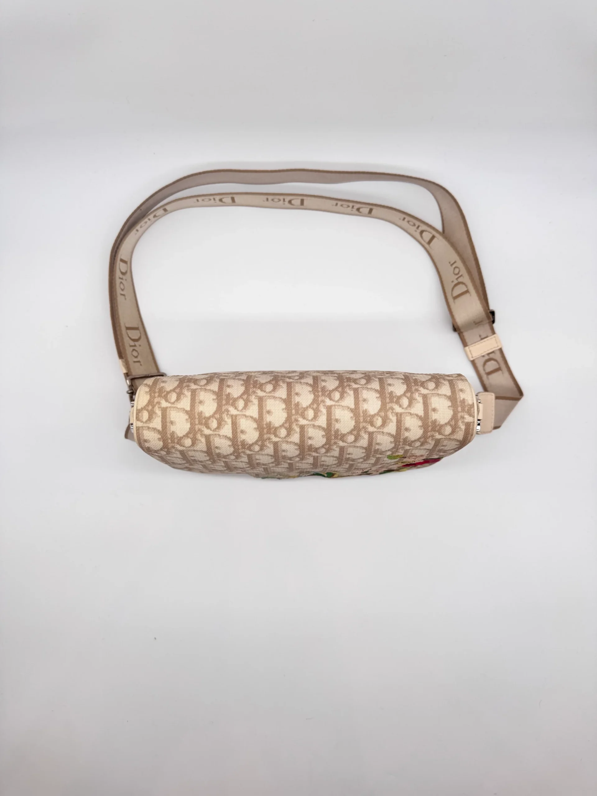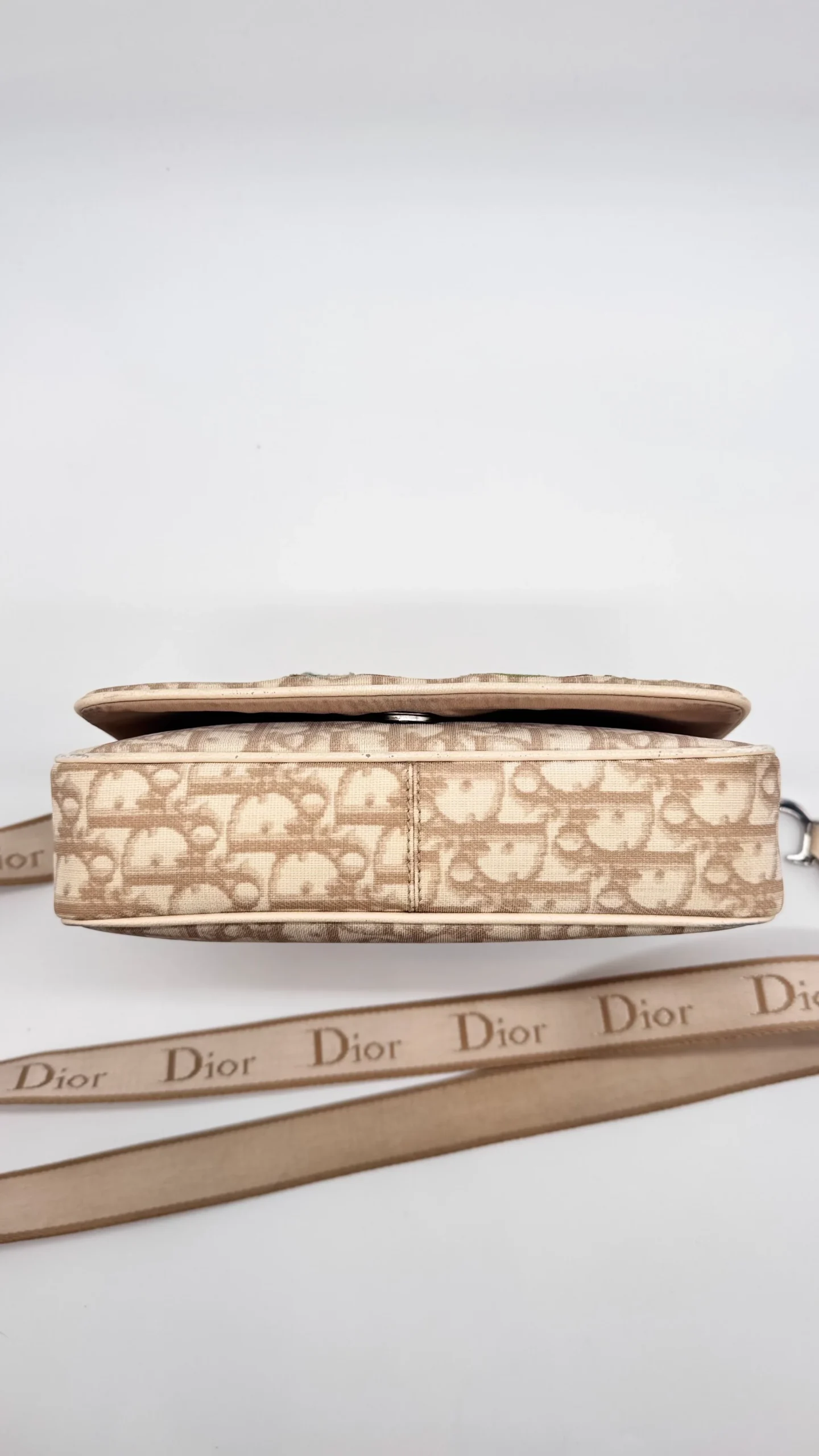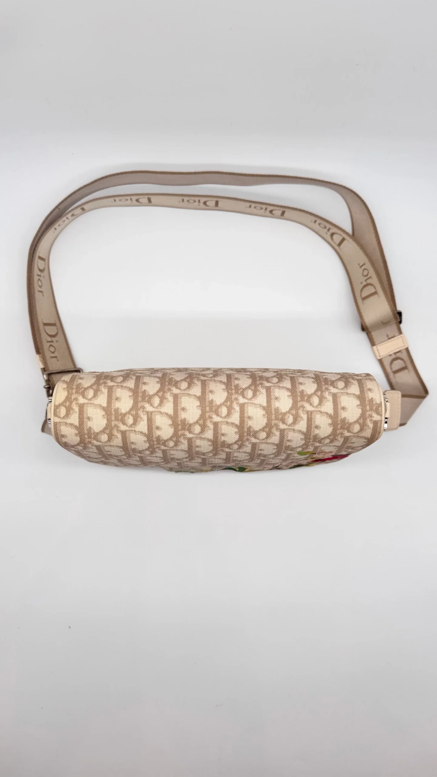 - Anse : Bandoulière réglable en toile signée “Dior”