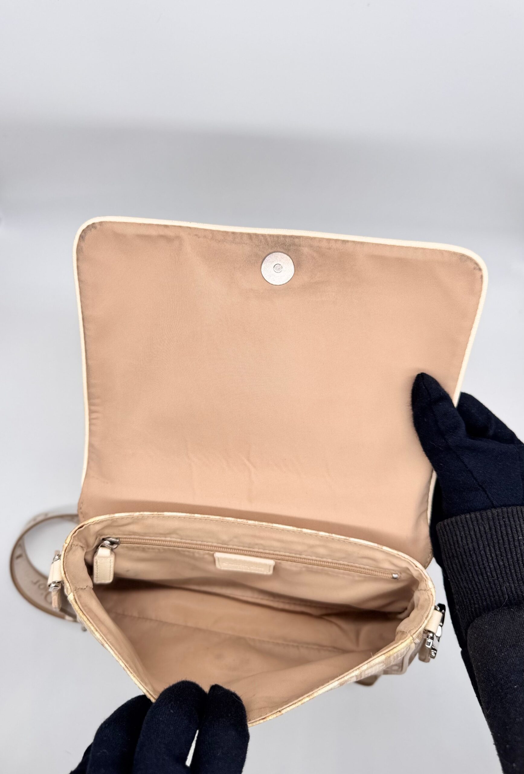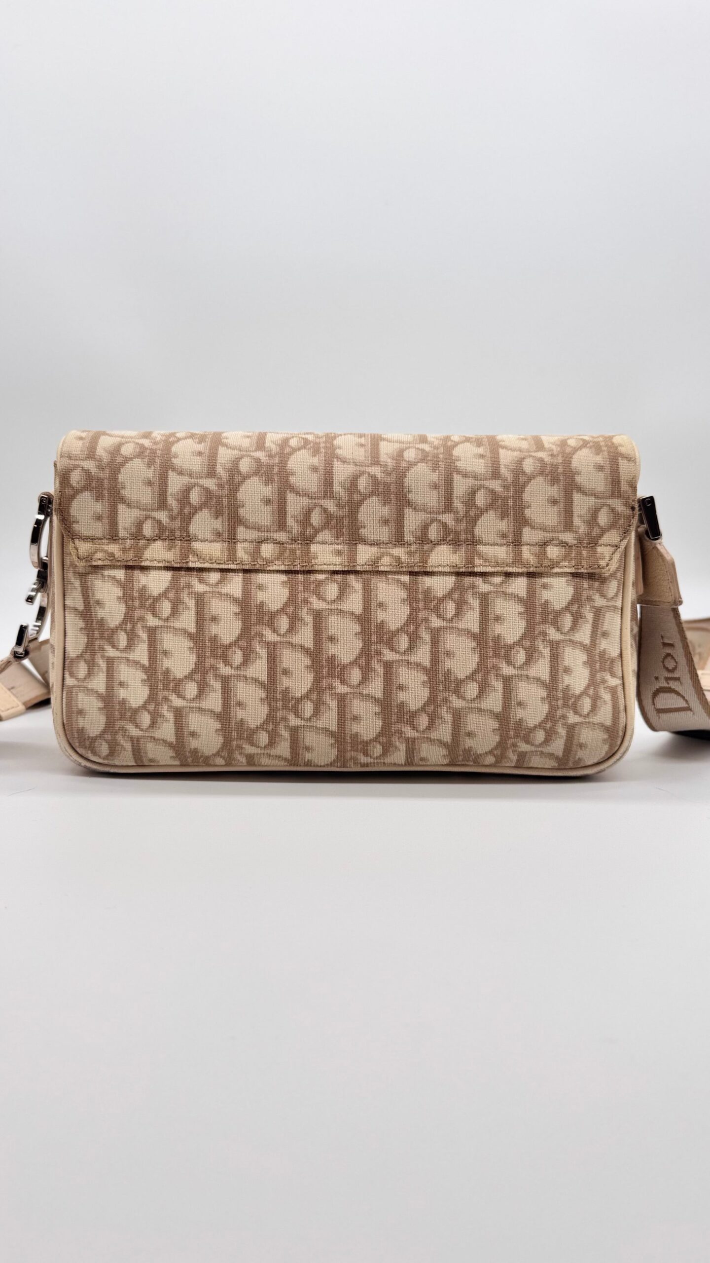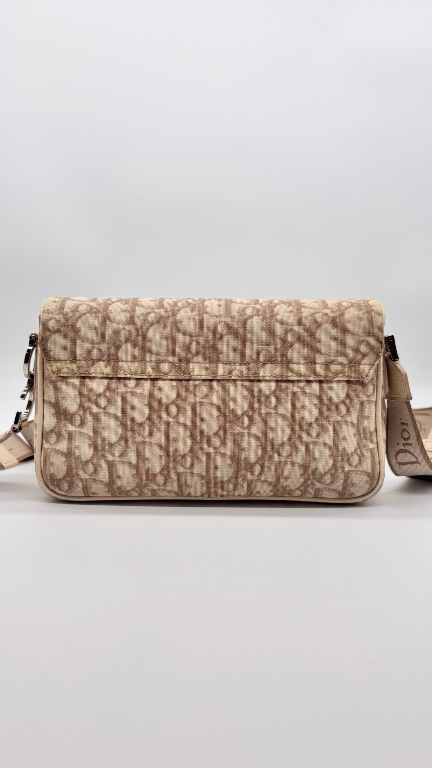 - Anse : Bandoulière réglable en toile signée “Dior”